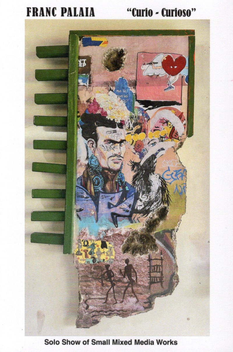 following media applied which includes paint, collage,spray, found objects, faux cement and all